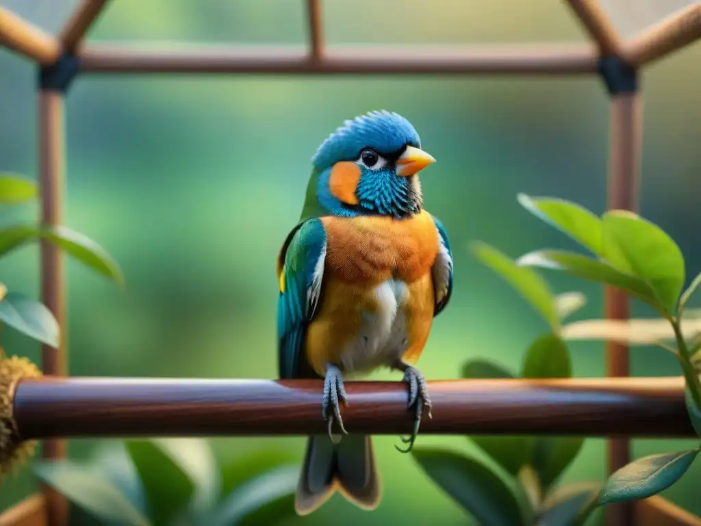 Un hogar acogedor con un aviario espacioso y una ave exótica sénior rodeada de cuidados y juguetes